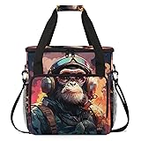 Adornori Funny Monkey Coffee Maker Carring Bag, Large Insulated Storage Organizer Case Tote Bags with Shoulder Strap for Travel Work Picnic