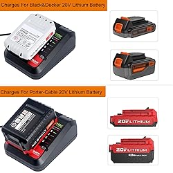 Compatible with Porter-Cable 20V MAX & Black and Decker 20V MAX Lithium Battery PCC680L PCC681L PCC682L PCC685LP PCC699L and LBXR20 LBXR2020 LBX4020 Tool Battery 2.0 AMP OUTPUT - Powers your battery packs quickly and efficiently.Charges 2.0Ah lithium batteries in 90 minutes or less. LED indicator to display charging status: charged, charging, battery too hot or too cold. Built in protection against over-charge, over-discharge, over-current, over-voltage, short circuit protection. Comply with FCC RoHS and CE security testing standards. Please note before purchasing: Only compatible with Porter-Cable 20V and Black&Decker 20v Crodless Tools Lithium Battery Series, not compatible with other brands of batteries such as Hart, Hyper Tough, etc.