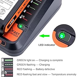 Compatible with Black & Decker 20V MAX lithium-ion batteries LBXR20, LBX20, LBXR2020, LB2X3020, LB2X4020, LBX4020, etc. 2.0 AMP OUTPUT - Powers your battery packs quickly and efficiently. LED Charge Indicator: Features a clear status display (Flashing Green = Charging, Steady Green = Full) Advanced Safety Protection: Built-in over-voltage, overheat, and short-circuit protection. The compatible model is the same as the original 20V battery charger, BDCAC202B, LCS1620B for Black & Decker.