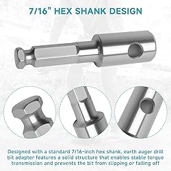 Compatibility: The 327687-6 earth auger bit adapter is compatible with Makita DDG460 cordless earth auger drill bit. Auger adapter is used to connect the earth auger driver with various specifications of spiral earth auger bits 7/16" Hex Shank Design: Designed with a standard 7/16-inch hex shank, earth auger drill bit adapter features a solid structure that enables stable torque transmission and prevents the bit from slipping or falling off Steel Construction: Made of solid steel, wear-resistant and impact-resistant. Cordless drill auger adapter functions as an intermediate connector to help securely in Fits Earth Auger Bits: This auger drill adapter serves as a conversion connector compatible with Makita and industrial-grade auger bits, making the driver. It performs reliably even in harsh soil conditions Quick Connection: Confirm the 327687-6 adapter matches the interface of the auger bit (typically hex or round), align it with the auger’s output shaft, insert the adapter, and use a locking mechanism (such as bolts or clips) to secure it to the shaft. Gently rotate the auger bit to confirm a secure connection