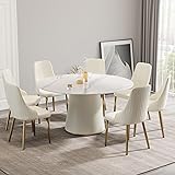 【Premium 7-Piece Dining Set】This luxurious modern dining set includes a 59" round sintered stone table and 6 cream-white faux leather upholstered chairs. Designed to seat 6-8 people, it effortlessly accommodates daily meals, family gatherings, dinner parties. 【Durable Sintered Stone Tabletop】Crafted from double-layer 12mm heat-resistant, scratch-proof sintered stone, the tabletop combines extreme durability with food-safe practicality. The base is wrapped in leather and features an embedded wood frame, carbon steel base, it ensures stability for heavy loads while elevating your dining room’s aesthetic. 【Comfortable & Ergonomic Chairs】The 6 padded chairs feature high-resilience foam, breathable waterproof faux leather, and ergonomic curved backs for all-day comfort. Reinforced carbon steel legs provide sturdy support and high weight capacity, making them ideal for extended use. 【Requires Assembly】:We provide videos and drawings for installation, complete with all the required parts and assembly tools, just follow the steps and the average adult can be assembled in less than 30 minutes! Enjoy the fun of assembly with your partner! 【After Sale Guarantee】:All products are subject to strict quality inspection. We offer 24 hours friendly customer service. If you find the items are damaged or have any problems, please do not worry and contact me in time and I will help you with free exchange or refund.