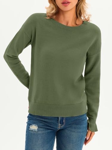 Saodimallsu Womens Fall Crew Neck Sweaters Ruffle Long Sleeve Lightweight Soft Knit Casual Pullover Top