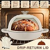 PROFESSIONAL BREAD BAKING EXPERIENCE: Achieve artisan-quality sourdough and crusty loaves with our 6QT cast iron bread oven and included banneton basket. The traditional dome design traps steam naturally, while easy-to-follow recipes help beginners and experts master homemade bread. GET A CRISPY BREAD CRUST EVERY TIME: Engineered for even heat distribution, our triple-layer enamel coating ensures a crispy golden crust and tender crumb. The dome lid locks in steam circulation—ideal for sourdough, whole-grain, and rustic boules. BAKING 4-PIECE SET: Dutch oven, Banneton proofing basket with liner, Heat-resistant silicone bread sling, Silicone baking mitts, and an instruction manual. No need to buy extra. VERSATILE CHEF-GRADE PERFORMANCE: Beyond bread, Roast, braise, or bake with confidence. Oven-safe to 500°F and compatible with stovetops (gas, induction, electric). Meanwhile, the high-quality enamel coating prevents rust, neutralizes seasoning residues, and resists sticking. It's easy to clean. THE ULTIMATE THOUGHTFUL GIFT: More than a bread oven—a gallery-worthy centerpiece in chef-curated hues. Ready to gift and crafted to gather loved ones over crackling golden crusts and unforgettable moments.
