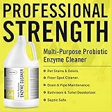 MULTI-PURPOSE FORMULA: Professional-strength enzymatic cleaner designed for surfaces including floors, bathrooms, toilets, drains, and trash cans PROBIOTIC TECHNOLOGY: Uses natural enzyme-producing probiotics to break down stains, grime, and organic matter at a microscopic level ODOR ELIMINATION: Effectively neutralizes unpleasant smells including pet odors and waste-related smells rather than masking them PROFESSIONAL STRENGTH: Concentrated gallon-size formula provides superior cleaning power for both commercial and residential applications VERSATILE USE: Suitable for multiple surfaces including tile, porcelain, concrete, and sealed floors while being safe for regular use