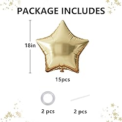 Party Must-Have: Our Star Foil Balloons are a must-have to brighten up a party.Beautifully designed, these star balloons are a versatile decoration for any celebration, making your party shine. PACKAGE CONTENT: You will get 15pcs 18inch star foil balloons with 2pcs straw and 2pcs ribbon in a wide range of quantities to suit your decorating needs. EASY TO INFLATE AND DISPLAY: Our mylar star balloons are very easy to inflate and arrange, simply inflate the balloon with helium and hang it on a stand, on a wall or make a balloon bouquet, or hang it from the ceiling. PRODUCT-QUALITY : Our star mylar balloons are made of good quality aluminum foil, which is resistant and also reusable. It stays inflated and in shape throughout the activity, allowing you to enjoy the celebration without worrying about deflated balloons. The aluminum foil also creates a shiny and eye-catching look that enhances the overall visual appeal of the decorations. WIDE RANGE OF USES: To catch the great moment with our photogenic star aluminum foil balloons! Whether you're hosting a birthday party, anniversary, baby shower or planning graduation parties, wedding receptions and holiday gatherings, these star balloons will create a stunning visual effect that will To catch the attention of all your guests.