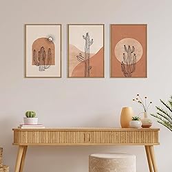 - Ausril Boho Minimalist Cactus Framed Canvas Wall Art Set, Mid Century Saguaro Wall Decor, Abstract Geometric Desert Wall Painting, Beige Brown Plant Art Prints for Living Room, Bedroom, Office - 16"X24"X3
