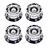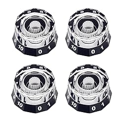 Compatibility: These metric 18-spline control knobs are fit for potentiometers manufactured in Asia, including renowned brands like Alpha. They are compatible with a wide range of electric guitars and basses produced in Japan, South Korea, China, and Indonesia, especially those released after the year 2000 such as Epiphone (including Les Paul, SG, and ES models) and Ibanez, ESP and Cort. NOT for American Gibson guitars with imperial 24-spline pots. Specifications: Spline shaft inner diameter: 6mm (0.236"); Top diameter: 21.5mm (0.846"); Bottom base diameter: 25.2mm (0.992"); Height: 14mm (0.551"); Numbers: 0-10. Package: Each set includes 4 control knobs: 2 tone knobs and 2 volume knobs. Enhanced Construction: Crafted from acrylic plastic, these knobs are built to withstand the rigors of regular use. The robust design ensures long-lasting performance and reliability. Please Note: Ensure an ideal match by referring to the detailed product specifications in the images section prior to making your purchase.