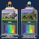 Natural Stream Simulation & Full Spectrum Lighting: Enhance your aquatic ecosystem with 3 modes White (plant growth), RGB (vibrant colors), and Full Spectrum (natural daylight) modes and 42 high-intensity LEDs. Our light mimics natural river flow, boosting plant growth (3572lm brightness) while showcasing vibrant fish colors with 95+ CRI for lifelike visuals. Smart Timer & 6-Level Dimming Control: Set daily schedules (6/10/12 hours) via color-coded indicators and customize ambiance 6 adjustable brightness levels with 10%-100% brightness. Energy-efficient 35W design ensures optimal lighting for 30-80-gallon tanks without overheating. Adjustable Fit for Any Aquarium: Flexible 4.7-inch telescoping arm and 7-inch height adjustment adapt to tanks up to 0.7-inch thick. Secure clamp holds firmly on glass/acrylic, while the lightweight aluminum body resists rust and corrosion. Auto Cooling & Durable Build:Built-in fan activates at 131°F (55°C) to prevent overheating ensures long-lasting performance; Stepped Fin Reflector design concentrates light for deep water penetration; High-borosilicate glass lenses ensure crisp, deep light penetration for thriving plants and clear water. Easy Setup & Stream-Ready Performance: Create mesmerizing water movement effects with the tiered grille design for focused beams. Ideal for tropical fish, planted tanks, or nano aquascapes—this waterproof, low-energy light transforms your tank into a shimmering natural stream.