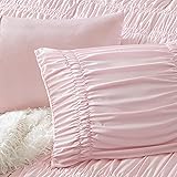 Intelligent Design Queen Comforter Set Ruched Shabby Chic Comforters for Queen Size Bed, All Season Lightweight Comforter Queen, French Country Bedding Set, Shams, Ella, Full/Queen, Pink 3 Piece