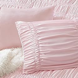 Face: Solid Microfiber With Ruched Deisgn and Attach Ties on Two Sides. Comforter/Shams Back: Solid Microfiber Filling: 100% Poly Fill. French Country Comforter - Turn your bedroom into a romantic French country retreat with this enchanting comforter set. The cozy ruched design, adorned with pretty bow ties, adds a touch of shabby chic charm, creating a dreamy and cozy update Ultra-Soft & Comfortable – Drift into cozy comfort with this relaxed bedding set, featuring beautiful soft colors. Crafted with pre-washed, brushed microfiber for cotton-like softness. OEKO-TEX STANDARD 100 Certified for high-quality standards All-Season Comfort - This delightful comforter set features a lightweight, plush fill that provides fluffy, cloud-like comfort, making it perfect for snuggling. Designed for year-round use, it ensures cozy warmth and restful sleep in every season Set Includes: 1 Comforter Full/Queen:90"W x 90"L and 2 standard shams 20"W x 26"L Easy Care - Designed to withstand daily use, this comforter set is conveniently machine washable for easy upkeep, so you can enjoy its beauty without the hassle.