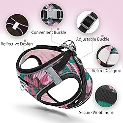 Custom Fit for Every Pet: Please use our Size Chart and measure your pet’s chest girth before purchase; sizing is based on actual body measurements, not breed or weight estimates Lightweight and Breathable: Made from colorful mesh and fabric, this vest keeps your furry friend cool and comfy during daily walks in any season Enhanced Security at Night: Equipped with reflective stripes that improve visibility in low-light environments, offering extra protection for pets during evenings or early mornings Three-Way Security System: Designed with a strong hook-and-loop panel, reinforced snap clasp, and twin D-rings for added leash control and escape resistance Quick and Easy to Wear: Step-in design makes dressing your pet simple and fast; just adjust the strap, clip the fasteners, and enjoy a hassle-free walking with your dog