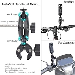 【Wide Compatible】: Compatible with insta360 X5/X4/X3/X2/X,and all GoPro action Cameras including GoPro Hero 13/12/11/10/9/8/7/6/5 Blcak,HERO Session,GoPro Hero(2018),etc.And other action cameras with 1/4 interface at the bottom 【Magnetic Mount for Insta360 X5/X4/X3/X2】This kit comes with a 88mm magnetic base mount,with super magnetic power,It can be firmly mounted on the iron part of your car body, provides a stable shooting environment. You’ll never worry about the camera being unstable or slipping.double socket arm and ball head design make it provides a very simple way to change the direction of the camera and help you achieve better shooting results. Hold the camera in one hand to find the angle, and hold the knob in the other hand 【Handlebar Mount for Insta360 One X5/X4/X3】:This handlebars mount is special design for insta360 one X5/X4/X3,aluminium alloy and abs plastic made,has strong resilience,perfect fit,idea cycling mount for your camera,This handlebat mount allows 360 degree rotation.just free adjust your camera,once you found the best shooting angle,tighten the knob to fix your camera.easy to rotate,and meet your all-around shooting require 【Usage scenario】The Kit Suitable for cycling, mountain biking, and off-road motorcycles. Magnetic mount can use for car outdoor and indoor,and gym or just iron surface,easy to mount and remove 【Handlebar Protection】 This ball head clamp Made of alloy and reinforced plastic composite material,the clip has non-slip rubber in order to reduce scratches and keep balance 【Handlebar Protection】Double ball head and double socket arm design make it with 360 degree rotation,for your shooting from any angles,meet your all-around shooting requirement. Enjoy the fun of shooting.it allows you lock your camera at the best visual angle and capture your best shots