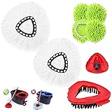 Chenille Mop Heads Replacements 4 Pcs & 2 White Mircofiber &1 Brush Head & 1 Base Set for Ocedar Easywring 1-Tank System,Reusable Microfiber Spin Mop Replacement Head for Floor Cleaning and Tile