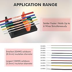Effortless Wire Soldering with Adjustable Sliding Holders: Say goodbye to wobbly wires! Easily slide (0-2.4INCH)and secure wires of any size (32-12 AWG) for perfect alignment and faster, more precise soldering Say goodbye to frustrating alligator clips and hello to effortless wire soldering! – No More Damaged Insulation: Unlike harsh alligator clips, our V-slots hold wires firmly without stripping or crushing, ensuring clean and reliable connections Boost Productivity: Solder Multiple Wires Simultaneously. Featuring 6 convenient slots, this station lets you prepare and solder multiple wire connections at once, saving you valuable time on your projects Versatile for Wire Connections: Ideal for Automotive, Audio, LED Strips & More. From splicing wires end-to-end to pre-tinning and connecting to terminals, this tool simplifies a wide range of wire soldering tasks in various applications Easy to Clean, and A Must-Have for Any Workbench: Made from high-quality ABS for use. Spills wipe clean easily. A simple yet incredibly effective tool that will quickly become your go-to for soldering wires TIP: You may can use place a wet folded paper towel piece at the base of the gap to prevent hot solder from dripping on the plastic and possibly deforming it. or use a wet sponge piece