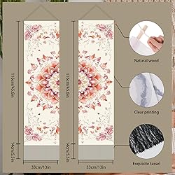 - Specifications: SUPERDANT 2PCS Flower Mandala Tapestry Modern Wall Hanging Tapestries Long Vertical Tassel Tapestry with Poles Ropes for Bedroom Living Room Porch Hallway Office Home Decoration 45.6x13 inch Feature: This tapestry has a fashionable and unique pattern design. It is an excellent interior decoration that decorates your room more fashionable and brings your home's long -lasting visual pleasure folk art style. Pattern:Flower Mandala Color: Multicolor Size:33x116cm (13x45.5 inch) A set of two different patterns of tapestry, with wall installation tools, you can hang it on the wall and windows of the bedroom living room office balcony and terrace. It is also an ideal relocation gift or a holiday birthday gift for relatives and friends. Notice: 1.Please allow 1-2mm measuring deviation due to manual measurement. 2.Due to the different monitor and light effect, the actual color of the item might be slight different from the color shown on the pictures.