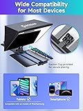 【16-Inch Ultra HD Glass】The Moman MT16 teleprompter features a large 16-inch beamsplitter glass that delivers clear script reflections, supporting a reading distance of up to 16.4 feet. This design helps reduce the frequency of retakes (NGs), enhancing work efficiency. 【Robust Metal Construction – Broad Camera Compatibility】Crafted with a durable metal frame, the MT16 serves as a sturdy mounting center for various filming equipment, ensuring it doesn't damage your camera lens. It's widely compatible with most camera and camcorder models. 【Supports Most Tablets and Smartphones】To accommodate the large reflective glass, the MT16 includes an adjustable clamp holder with a maximum width of 29cm (11.42 inches), making it suitable for most tablets and smartphones. A suction cup is also included for secure placement. 【Remote and App Control】The MT16 works seamlessly with the Moman Prompter App, allowing you to adjust text size, scrolling speed, and more. The included remote control enables easy operation from a distance. 【Adjustable Prompting Angle】Equipped with a knob for adjusting the reflecting angle, the MT16 adapts to various sightlines, providing a clear and natural reading experience whether you're sitting or standing.