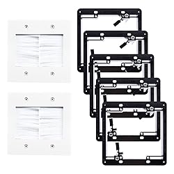 EFFORTLESS CABLE MANAGEMENT FOR CLUTTER-FREE WALL: This 2-gang cable pass-through wall plate hides messy cables behind the wall to create a tidy environment. Its polished design and pure white surface make it well-suited for living rooms and offices. QUICK AND EASY INSTALLATION: The low voltage mounting bracket has 4 pre-set corner holes as a cutting guide, helping you cut a clean and suitable hole in the wall. The wing clips provide a strong and flush fit, making installation a breeze. LARGE CAPACITY FOR ALL CABLE TYPES: The 2 gang wall plate measures 114.3 ×116.3 mm (4.50 × 4.58 in) and features a wide opening to hold over 100 × 6 mm OD cables. The nylon brush helps block dust and unwanted pests from the hole and won't damage cables. BUILT TO LAST WITH DURABLE MATERIAL: Made from heavy-duty, flame-retardant PC material, the wall wire hider and low-voltage box will not bend or crack during installation, ensuring long-lasting durability and peace of mind. Soft brush won't damage cables. PACKAGE CONTENTS: 2 x 2 Gang Brush Faceplate + 5 x Low Voltage Mounting Bracket. We Provide 18 months warranty for quality problems.