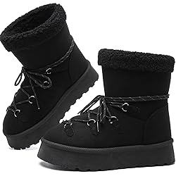 - Women's Fashion Winter Ankle Boots - 1.77" Platform DesignPremium Materials: Soft faux suede upper with plush sherpa lining for lightweight warmthComfortable Design: 1.77-inch platform sole provides subtle elevation without compromising comfortVersatile Wear: Wear as lace-up or slip-on for different styling optionsPractical Features: Textured outsole for traction + reinforced toe for durabilityEasy Care: Simply brush with suede cleaner and air dryStyle Tip: Perfect with jeans, leggings or skirts for casual daytime wear.