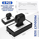 Complete Notary Stamps: this notary ink stamp set include 1 jurat stamp and 1 acknowledgement stamp, preload with a standardized notary jurat and acknowledgement statement, ensuring compliance with most state requirements, ideal for affidavits and sworn documents; This 2pcs notary stamp set saves time by eliminating the need for handwritten statements, offering convenience and legal precision Portable and Convenience: the notary stamp measures 1.38 x 3.35 inches, easy to store or carry; You can easily put it in your pocket or bag and take it anywhere; Saving you time and reducing stress during busy notarizations Reliable Material: this notary stamp is crafted with a hard black plastic shell, which built to withstand daily use in legal, real estate, or financial settings; Waterproof ink, safe and reliable, with the oil based ink to provide a clear, crisp impression every time; Self inking design allows for rapid, repetitive stamping Crisp Self-inking Impressions: this self inking notary stamp delivers sharp, consistent black ink impressions with minimal effort; This notary stamp is safe and reliable, fast drying and not easy to fade, without any missing ink spots Refillable and Easy to Use: this notary stamps for public supplies built to deliver thousands of impressions before needing a refill; You don't have to keep carrying all those pieces of papers with all the certificates, for staying within the legal boundaries; You don't have a certificate on a page and you're putting a notary stamp, this is the right way to do it