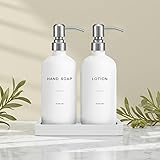 [Family-Friendly] These bathroom soap dispensers come pre-labeled as “HAND SOAP” and “LOTION” to avoid confusion for anyone who uses them. This liquid soap dispenser for bathroom is suitable for bathroom accessories decor. [Modern Minimalist] The handsoap dispenser for bathroom gives out contemporary flair vibes. With its modern and fashionable appearance, our bathroom soap dispenser pump set will effortlessly enhance the aesthetic of any bathroom. [Thoughtful Tray] This lotion dispenser for bathroom set includes a handmade tray that adds an extra touch of style and convenience. The tray is designed with anti-slip pads, providing stability and preventing the handwash dispenser and lotion pump bottle from sliding. [Exceptional Quality] The white hand soap dispenser is made of glass matched with metal pumps. The hand soap pump set is rust-free and can be refilled every time for multiple uses. [After-Sales Service] Please contact us in case of any issues or questions, and we shall try to help you out.