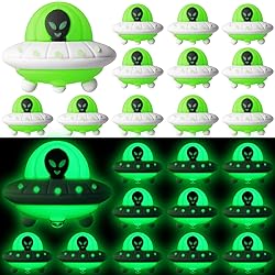 Radiant Curiosity:Each glow-in-the-dark alien figure, crafted from durable PVC material, shines with vibrant light, creating a mesmerizing or space-themed display in dim settings. The 3.5x3.5cm size makes these figurines perfect for trick-or-treat adventures, ensuring endless creative play and spooky decoration potential Celestial Design: These toys stand out with their unique spacecraft design and glowing green color. Ideal for night-time hunts or theatrical displays, they bring eerie magic and storytelling to life, captivating hearts with their enchanting luminescence Party Favor Extravaganza:Transform any aliens party into a cosmic celebration with these glow-in-the-dark aliens. Whether as spooky party favors or game prizes, guests love these mini treasures. Their vibrant glow and compact size perfectly capture the holiday's essence Peekaboo Fun:Perfect for hide-and-seek or haunted house pranks, these aliens deliver unexpected delights when lights go out. Tuck them into candy bags or pumpkin buckets to spark joy and mischief Versatile Party Supplies: From aliens piñata fillings to carnival prizes, these 1.38-inch aliens fit standard vending capsules and treat bags. Parents and educators adore them for spooky rewards and STEM-themed projects alike