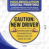 Magnet Me Up Caution New Driver - Embarrassed by Over Protective Parents Who Put Signs in Car Magnet - 5 Inch Round Funny Magnetic Decal, Teen Drivers - Durable UV-Printed, Made in The USA