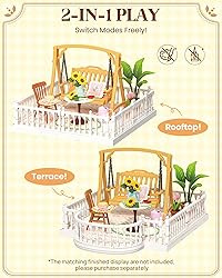 [Rolife Super Creator Accessory] An exclusive piece for Super Creator dollhouses. Attaches to the rooftop, unlocking enchanted play possibilities. [Lightning-Fast Assembly] Just 68 pieces, completes in 20 minutes. Effortlessly enhances the series, unlocking more diorama magic." [Paired with Figurines] Designed for mini blind-box figures, offering a lush garden-style retreat. Instantly transports you there. Paired with Super Creator houses, it elevates your decor into a storybook realm.