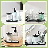 Yaomiao 5 Pack Bathroom Accessories Set, Modern Bathroom Decor Sets, Glass Liquid Soap Dispenser, Vanity Tray, Toothbrush Holder, Cotton Swab Jars with Lids for Sink Countertop(Clear,Striped)