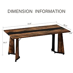 - WIDE TABLE TOP: The large 70.9 X 35.4 inch table top provides plenty of space for up to 8 people, perfect for parties or as a conference table. LUXURY TABLE DESIGN: The dual-color brown and black finish on the wooden tabletop showcases an industrial rustic style. The tabletop is water-resistant, scratch-resistant, and easy to clean. STRONG AND STABLE: The dining table is made up of 3 pieces of premium MDF and high quality steel for stability and sturdiness. The table can hold up to 330 pounds to ensure a solid foundation for your experience. ADJUSTABLE FOOT DESIGN: The bottom of the table is made of sturdy steel for stability and firmness, and the bottom is equipped with 8 adjustable feet to maintain stability and balance even on uneven floors, and to prevent scratches on the floor. Assembly is a piece of cake: the product comes with clear assembly guidelines, and the parts are clearly labeled, making it easy to assemble. Waterproof and easy to clean Made of high-quality MDF, marble surface, waterproof and stain-resistant desktop is easy to clean. Robust and stable High-quality steel reinforced frame and adjustable legs make this table sturdy and stable. Wide tabletop provides plenty of space for up to 8 people.