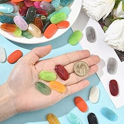 - SOFPLATE 1 Box about 100Pcs Acrylic Gemstone Beads Flat Gemstone Beads Bulk Loose Plastic Oval Opaque Colorful Imitation Stone Spacers for Jewelry Making Findings Bracelet DIY Crafts Beginners Adults Brand: SOFPLATE Material: Acrylic Color: Colorful Usage: For Jewelry Making Findings Bracelet Neckalce Beginner Adults Feature: 100Pcs acrylic gemstone beads: A box comes with approximately 100pcs of acrylic gemstone beads, with colors randomly sent. This generous amount is perfect for various jewelry making projects, allowing you to create multiple pieces without the hassle of constantly restocking Flat gemstone beads design: These flat, oval shaped beads feature an opaque, colorful imitation stone look. The unique design adds a touch of elegance and charm to your jewelry creations. Whether for a bracelet or other jewelry items, they stand out as eye catching spacers Size: Our acrylic gemstone beads is about 29 x 16 x 4mm(1.14 x 0.63 x 0.16 inch), hole: 1.5mm. Come with cardboard box x 1pc Excellent material: Made from high quality acrylic, these beads are durable, lightweight, and not easy to fade. They can endure daily wear and tear, ensuring your handmade jewelry remains beautiful over time Versatile usage: Perfect for a wide range of jewelry making and DIY crafts. Use them to create stunning bracelets, necklaces, or even embellish other craft projects. Their versatility makes them a must have for both beginners exploring their creativity and adults looking for new crafting ideas