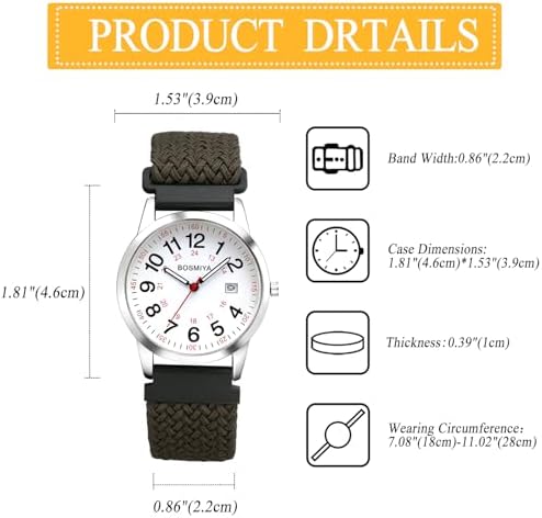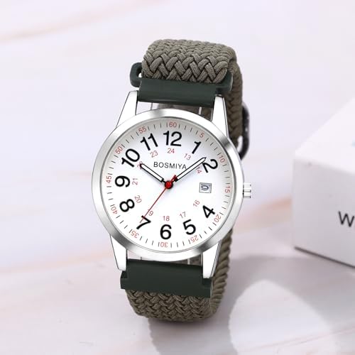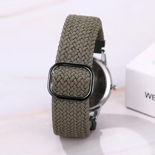 Lancardo Braided Elastic Strap Watch: 24-Hours Analog Quartz Adjustable Arabic Large Dial Casual Wristwatch for Men Women Easy-to-Read