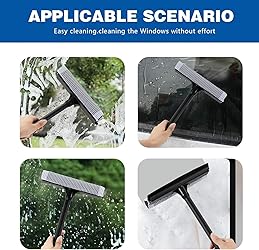 【2 in 1 Window Squeegee】 Combines a natural soft rubber squeegee blade with a high-density nylon-netted sponge to help lift dirt and moisture from surfaces. This design aims to support gentle cleaning on glass, mirrors, and vehicle windows while helping protect against surface damage. 【Extended Reach Fixed Handle】 Features a lightweight 15.9-inch non-adjustable pole with a corrosion-resistant plastic handle and textured non-slip grip. Designed to assist in accessing elevated areas like high windows or shower enclosures, and suitable for ground-level cleaning tasks. 【Multi-Surface & Environment Versatility】Suitable for residential, commercial, automotive, and marine use. Effectively cleans auto windshields, boat windows, house windows, glass doors, mirrors, shower glass, tiles, tables, and other smooth non-porous surfaces indoors or outdoors. 【Reinforced Construction】 Engineered with deep-threaded connections at critical joints to support structural integrity. The corrosion-resistant materials aim to enhance durability for regular household, automotive, or marine cleaning applications. 【Streak & Scratch Minimizing Design】 The natural rubber blade and textured sponge work together to help reduce streaks and residue on glass. Focused on supporting efficient, scratch-aware cleaning for delicate surfaces like windshields, mirrors, and tabletops.