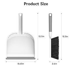 EFFICIENT CLEANING: Six rows of thickened bristles can effectively clean dust, hair, food crumbs, etc. The rubber edge on the dustpan can fit snugly on the desktop, cleaning without leaving any crumbs, dust or hair COMB TEETH DESIGN: The comb teeth on the dustpan make it easy to put the brush into the dustpan for cleaning, and you can clean pet hair and human hair from the brush with just a gentle pull of the teeth CONVENIENT STORAGE: There are hanging holes on the handles of the brush and dustpan, and the brush handle is directly embedded in the dustpan handle. The one-piece design makes storage easy and saves space WIDE RANGE OF USE: This small dustpan and broom set has a wide range of uses, such as sofas, camping, furniture, floors, table tops, countertop, cars interior and this area around pets. It sweeps dust, hair, cat litter, pet food SATISFIED SERVICE: If you have any dissatisfaction with our hand broom and dustpan set, please get in touch with us, we will provide you with a suitable solution and make sure you have a good shopping experience