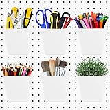 Funnytek 6Pack Large Pegboard Cups, Square Pegboard Bins with Hooks, Wall Organizer Storage Box for Garage Office DIY Tools Home Kitchen Organization (White)