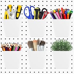 - If your room, kitchen, garage is cluttered with a lot of stuff, these pegboard containers with hooks can meet your organizing needs, easy to install and more convenient to use. The pegboard tool organizer can be tightly arranged so you can store and organize your tools in wire rack baskets, pegboards and more, and you can find them easily. These pegboard cups are suitable for most places where you need to organize your items, such as storage, kitchen, office, living room, craft room, bathroom, toy room, etc. Specification: Name: Pegboard Cups with Hooks Material: PP and metal Color: White Size: 12*10*13cm/4.7*3.9*2.1in Weight: 72g/2.5oz Package Include: 6 x Pegboard Cups 6 x Pegboard Hooks Notes: Manual measurement, please allow slight errors on size. The color may exist a slight difference due to different screen displays. 𝐓he pegboard is not included.