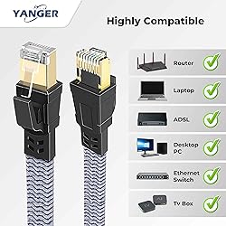 - Experience lightning-fast internet connectivity with this YANGER Cat 8 Ethernet cable. Featuring a robust nylon-braided flat design, this 3-inch cable delivers impressive speeds up to 40Gbps with 2000MHz bandwidth, perfect for high-performance gaming and data-intensive applications. The male-to-male RJ45 connectors ensure reliable connectivity between your devices, while the SFTP (Shielded Foiled Twisted Pair) construction provides superior protection against interference. Compatible with a wide range of devices including laptops, gaming consoles, TVs, PCs, routers, modems, and printers, this versatile cable adapts to your networking needs. The durable nylon braiding not only adds style but also enhances the cable's longevity, making it ideal for indoor use. With its 23-gauge construction and 8-pin configuration, this cable maintains signal integrity for consistent performance. Whether you're setting up a gaming station or upgrading your home network, this Cat 8 cable delivers the speed and reliability you need.