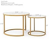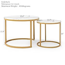 - Product Name: Two-piece coffee table, white and gray tabletop, gold frame, round marble wood table for living room, bedroom, apartment, modern industrial style simple bedside table Main color: white + gray Main material: MDF + metal Purpose: main living space Table shape: round Tabletop installation type: floor-standing Product weight (pounds): 10.23 Packaging dimensions Length (inches): 24.80 Width (inches): 24.80 Height (inches): 3.93 Weight (pounds): 12.54 This versatile two-piece coffee table complements any decor style and can be used alone or in combination. Made of durable MDF and metal, these tables are durable. The simple design ensures stability, and the clean appearance makes it suitable for any room. These nesting tables are ideal for use as coffee tables, bedside tables or display shelves, and are ideal for small spaces. Elevate your space with these practical and elegant tables. Thank you very much for visiting our store and wish you a happy shopping!