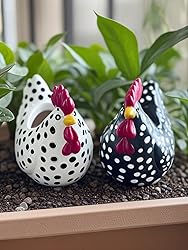 【CUTE STYLE】Our fun flower pot features a unique design that is sure to catch the attention of anyone who sees it. Black planters have a humorous and playful look, adding a touch of fun and personality to your garden or indoor space. 【HIGH QUALITY MATERIAL】This flower pot is made of high quality resin, it can withstand various weather conditions and is suitable for indoor and outdoor use. Whether placed on the farm table as a decorative centerpiece or to decorate the garden, this adorable chick ornament will stand the test of time. 【MULTIPLE PLANT SELECTION】With its spacious interior, it provides a perfect new home for a variety of plants such as herbs, succulents, cacti, bonsai and artificial plants. 【MULTI-PURPOSE USE】Whether you are an animal lover or just appreciate unique decorations, this Funny Chicken Flowerpot Ornament is the perfect choice for you. It can be used as a flower pot, plant stand, or even as a decorative statue in your home. 【EASY TO MAINTAIN】This cute animal planter requires minimal maintenance. Just wipe it clean with a damp cloth to keep it fresh and vibrant. Its spacious interior gives your favorite plants plenty of room to thrive.