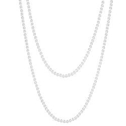 - The necklace features lustrous 8mm imitation pearls handstrung on a durable silk blend cord, each bead securely knotted to prevent shedding or breakage. This thoughtful construction ensures the necklace maintains its beauty through countless wears, whether you’re dressing up for a special event or adding a touch of sophistication to your everyday look. At 59"/150cm in length, the necklace offers endless styling possibilities – wrap it around multiple times for a layered, bohemian-inspired look, or wear it as a single, flowing strand for a classic, minimalist vibe. The cream white hue of the pearls complements a wide range of colors, making it easy to pair with both casual and formal attire. Specifications & Details: Material: High-luster imitation pearls with silk-blend cord Length: 150cm / 59 inches (entire strand) Pearl Diameter: 8mm uniform size Weight: 110g for substantial drape Construction: Individual knotting between pearls