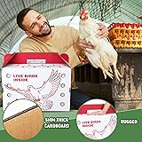 - Features: This live chicken transport crate has a ventilation hole that acts as a viewing point, allowing you to easily check on the animal's condition without opening the crate. This design helps maintain a healthy environment and gives you peace of mind throughout the entire shipping process. The live poultry transport crate has a built in handle for easy carrying, allowing you to carry the crate safely and easily during travel or transportation. Specifications: Material: paper Color: white, red Size: 17.5 x 15 x 8.5 inches/ 44.5 x 38 x 21.5 cm Package includes: 15 x Live Chicken Shipping Boxes Notes: Manual measurement, please allow slight errors on size. The color may exist a slight difference due to different screen displays.