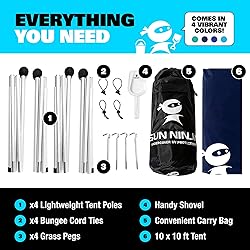 Bundle Includes: 3 Items - SUN NINJA Beach Tent Shelter plus Sand-Free Beach Blanket and UPF 50+ Bucket Hat; enjoy ultimate sun protection with this beach essentials bundle Ultimate Sun Defense: The SUN NINJA beach tent shelter and UPF 50+ bucket hat offer UPF 50+ sun protection, shielding you from harmful rays; perfect sun hats for women and men Sand-Free Comfort: The large sand-resistant beach blanket provides a clean, comfortable space for the whole family; enjoy beach accessories like never before with this foldable beach hat Effortless Setup & Portability: The pop-up beach tent sets up quickly, and the lightweight blanket and packable sun hat are easy to carry; ideal beach gear for any adventure Versatile Outdoor Fun: Perfect for beach outings, camping, and picnics, providing shade, comfort, and uv protection; this womens sun hat and mens sun hat bundle is a must-have