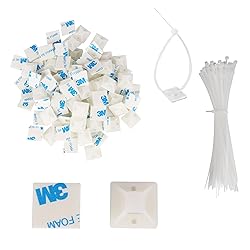 - Tame your cable chaos with GIASYIEH's professional-grade adhesive zip tie mounts! Our 100-pack cable management kit combines heavy-duty 6-inch white zip ties with 3M-backed sticky bases - no tools required.Use these wire organizers anywhere: Home theater and office desks Outdoor security cameras/string lights Boats/RVs (salt-proof!) Kids' room toy anchors (no sharp edges!)Package: 100× Adhesive Cable Clips + 100× 6" White Zip Ties