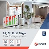 - The LQM Exit Sign from Lithonia Lighting Quantum family delivers next level performance for a wide variety of commercial indoor applications. The LQM Exit Sign raises the bar for emergency lighting by offering 4 products in 1. It comes equipped to service both red and green EXIT letter coloring and features a switch on the product that allows you to choose either AC or battery back-up (EL) during installation. The LQM Exit Sign also features a “quick mount” canopy that allows the choice between either top, back, or end mount while leaving no hardware visible from the floor (canopy is provided). Additionally, it ships standard with an extra faceplate to quickly convert the exit sign from a single to a double-faced exit making it perfect for offices, schools, hospitality, health care, multi-family and many other applications.