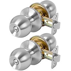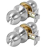 Application: This bedroom door knobs with lock designed for residential interior doors. Ideal for use in the bedroom, bathroom, office, or any other private place by locking the inside without a key to secure your privacy. Door Compability: Door knobs interior with lock adjustable latch fits doors with 2-3/8’’ - 2-3/4’’ (60-70mm) backsets and doors from 1-3/8’’ to 2 (35-45mm) thickness. Quality: Locking door knob for bedroom crafted from high quality stainless steel and boasting ANSI Grade 3 certification, guaranteed to over 200,000 cycles. locking door knob for bedroom is built to last, being the ultimate choice for those who value durability. Design: Our interior door knob with lock are design in a modern contemporary round makes an impressive addition to any door. Brushed nickel door knobs, the adjustable latch through bolt and reversible design fit most standard door configurations. Easy to Install: Our interior door knobs privacy install easily with Phillips screwdriver, just tighten the screws with a screwdriver and install easily in minutes. Simple knob design for easy operation.