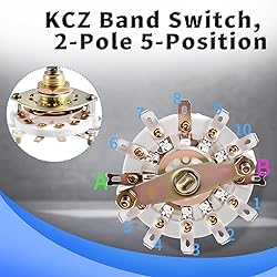 FOCMKEAS KCZ Rotary Band Switch 2P5T 2 Pole 5 Position Band Channel Rotary Selector Switches 1 Deck Waveband switches with Knob for TV, Radio, Electronic Device