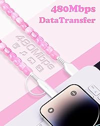 【Wide Compatibility】This 2 in 1beaded phone charging cord is for a wide range of devices,USB C output for iPhone 17/17pro/17pro max/air/16/16plus/16pro/16 pro max ,for iPhone 15/Plus/Pro/Pro Max, for Galaxy S24/S23/S22/21/20, for iPad Pro 12.9-inch (5th/4th/3rd/2nd generation), portable chargers, car chargers, wall chargers, and virtually all USB-C devices, including phones, tablets, and laptops.iOS output for iPhone 14/13/12/11/Pro/Max/Mini/ XS/Max/ XR/ X/8 Plus/7/6s Plus/6s/for iPad Pro/for iPad Air/for iPad mini/for iPad 4th gen/for iPod Touch 5th gen/for iPod 【66W Fast Charging & Data Sync】Our USB cable supports 66W safe high-speed charging output, the charging cable can fully charge most mobile phones from 0% to 60% in 30 min, it also supports data syncing speeds of up to 480Mb/s.while preventing overheating. High coverage aluminum foil makes data transmission is not disturbed by external signals 【Durable USB Cable】This beaded phone charger cable is constructed with high-quality copper and coated with premium TPE, tested to withstand over 40,000 bend lifespan, ensuring exceptional durability. It also features an aluminum foil signal shielding layer and overvoltage protection for faster and safer charging 【3.3FT Beaded Charger Cable 】Our Pink beaded charger cord has a stylish and classic appearance, and it is 3.3ft long allowing you to place your devices exactly where you need them for comfortable use while charging.and the material acrylic material, smoothly polished, eco-friendly and odorless 【Pink Beaded Charge Cable for Women 】This charging cable has a Stylish design that uses pink beads that revent wear & tear ,making it not only a data cable but also a beautiful decoration,unlike ordinary charging cables.Adorable .They are perfect for gifting to children, girlfriends, and family members