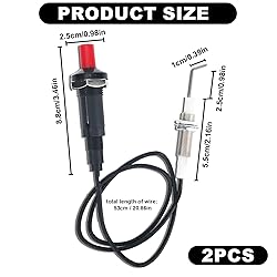 Package Include: You will receive 2 igniters, 8 screws, and 2 ignition needles, enough to meet your usage needs. Size Information: The igniter length is 8.8cm/3.46 in, the wire length is 53cm/20.86 in, the ignition needle length is 2.5cm/0.98 in. Premium Material: Our grill igniter is made of premium plastic, ceramic and copper, with good performance, reliable and durable. Easy to Use: The propane push button piezo igniter with no battery required for ignition. Each press will produce a single spark, which is easy to use. Wide Application: Our practical propane push button piezo igniter kit is suitable for oven, kitchen, and gas fireplace.