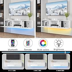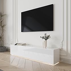 Modern & Spacious: This 63-inch TV stand features a sleek, high gloss front design with a drop-down cabinet offering three storage units, providing a modern look while offering ample storage space for media equipment and accessories. Flexible Placement: It offers versatile mounting options, allowing you to mount it on the wall or place it on the floor, giving you the flexibility to set up your entertainment area according to your preferences. Smart Lighting Control: With an integrated light strip that can be controlled via an app, you can easily adjust the color and mode to create the perfect ambiance for any occasion. Easy Maintenance: The high gloss front is easy to clean, ensuring that your TV stand stays looking great with minimal effort. Simple Assembly & Durable Build: It is easy to assemble and install, with clear instructions, and is made from high-quality materials, ensuring durability and long-lasting use.