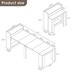 Space Maximization: Effortlessly extend the table from 20 to 100 inches, accommodating up to 10 people. Perfect for family gatherings or conference room setups. Sturdy Elegance: Crafted with high-quality metal and robust MDF, this table holds up to 300 lbs with ease. Enjoy a durable piece that stands the test of time. Dual Functionality: Transform from a spacious dining table to a sleek sideboard with a storable cabinet. Versatility at its best, saving space when not in use. Seamless Assembly: The perfect addition to any kitchen.Easy to assemble with detailed instructions, ensuring a stress-free setup process for your convenience. Effortless Maintenance: High-quality sticker on the surface resists dirt and grease, making cleaning a breeze – just wipe with a damp cloth.