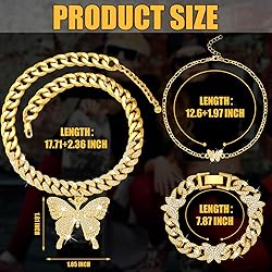 - Features: Ideal gift option: Presented in beautiful packaging, our total hip hop cuban jewelry set makes for the ideal gift for a loved one.You can surprise them with this stunning collection to celebrate birthdays, anniversaries, or any special occasion where you want them to feel cherished. Silver elegance You can embrace the versatility of the silver butterfly jewelry that adds a touch of elegance and sophistication to any outfit. The silver series can blend seamlessly with any style or color scheme, making it a proper fit for every wardrobe. Specifications: Material: alloy, rhinestones Color: silver Butterfly necklace size: Thick one: about 17.71 inches with 2.36 inches long extended chain Thin one: about 18.9 inches Package includes: 1 x Diamond watch 2 x Butterfly necklaces 1 x Butterfly bracelet 2 x Simple bracelets 1 x Butterfly ring 1 Pair of earrings Notes: Manual measurement, please allow slight errors on size. The color may exist a slight difference due to different screen displays. If you use our products with your own necklace or pendant, please check whether the product is in good condition before use to avoid unnecessary loss of personal property